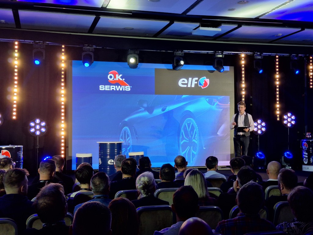 Część konferencyjną wypełniły prezentacje TotalEnergies, ELF oraz INTER-TEAM Sp. z o.o., a ich przedstawiciele mówili m. in. o nowoczesnych olejach silnikowych, historii marki ELF w Polsce i na świecie, trosce o zrównoważoną przyszłość oraz oczywiście o samej sieci O.K. Serwis ELF.